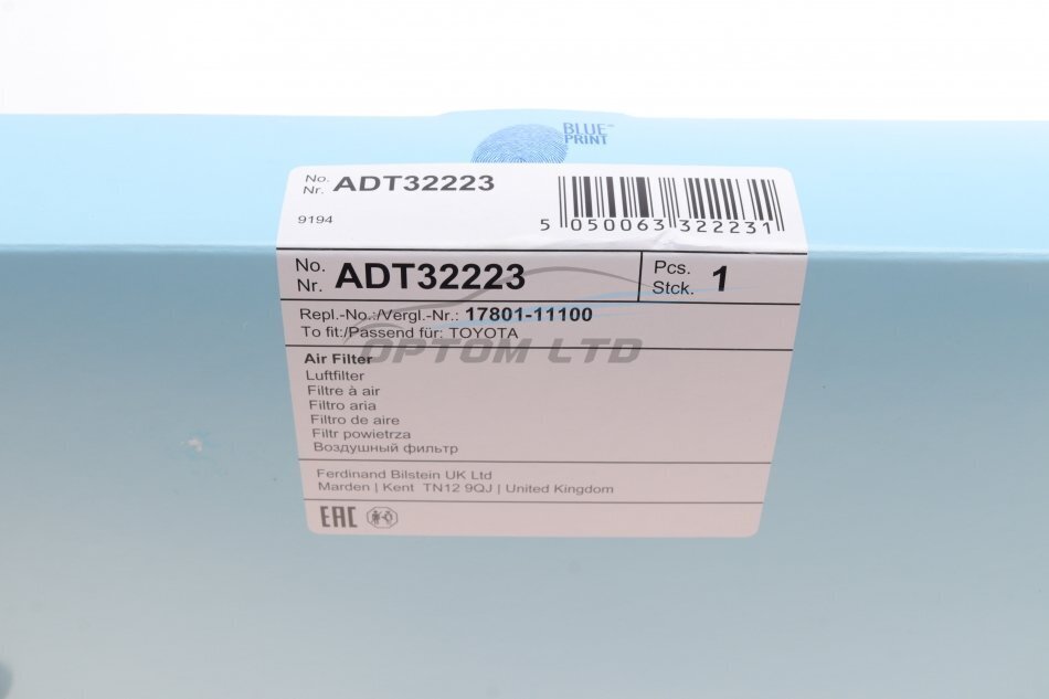 Фильтр воздушный Toyota (пр-во Blue Print)