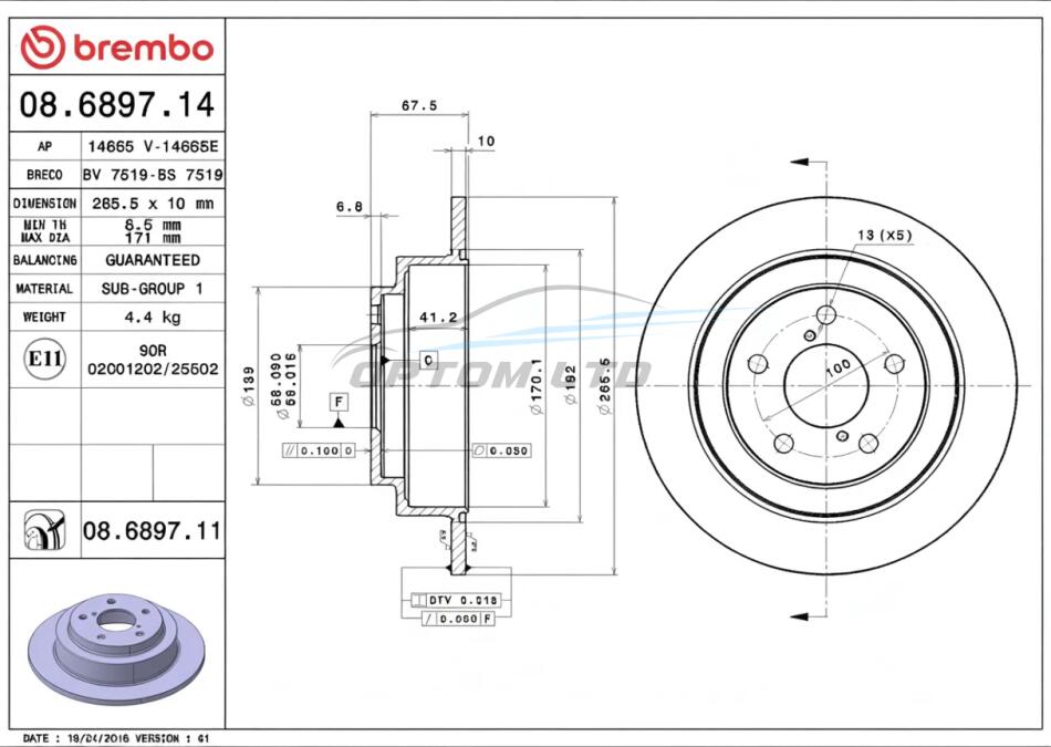 - BREMBO 08.6897.11 подходит к маркам/моделям авто: