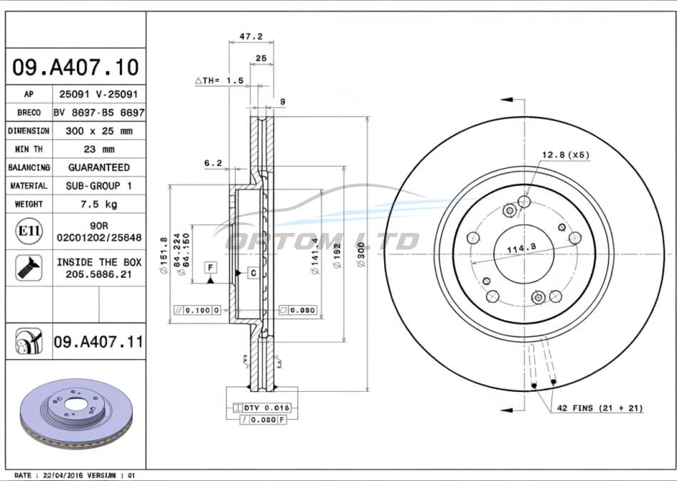 - BREMBO 09.A407.10 подходит к маркам/моделям авто: