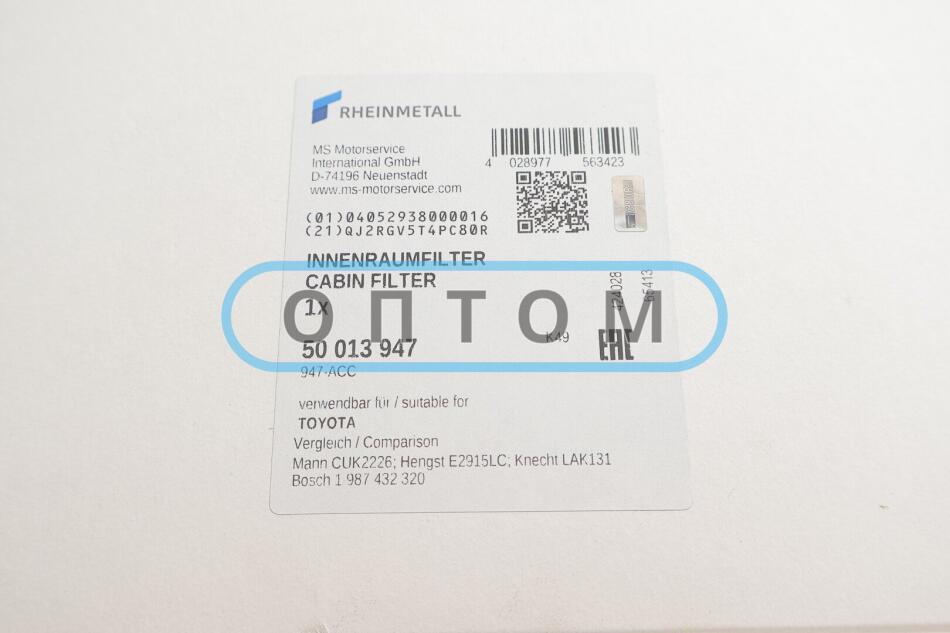 Фильтр салона SUBARU LEGACY, LEXUS RX 03- угольный (пр-во KOLBENSCHMIDT)