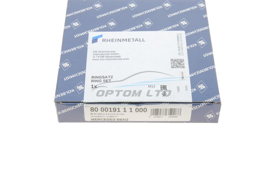 Кольца поршневые MB 97.0 (2.5/2.5/4) OM314/OM352 (1 ЦИЛ) KOLBENSCHMIDT