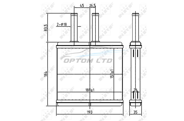 Размеры радиатора: 150 - 193 - 24