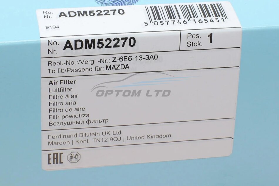 Фільтр повітряний Mazda Mazda 3 1.6 16V 13- (opt-om) BLUE PRINT
