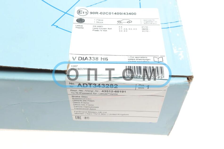 Диск гальмівний (передній) Toyota Land Cruiser 200/ Prado 08- (338x32) UA63 BLUE PRINT