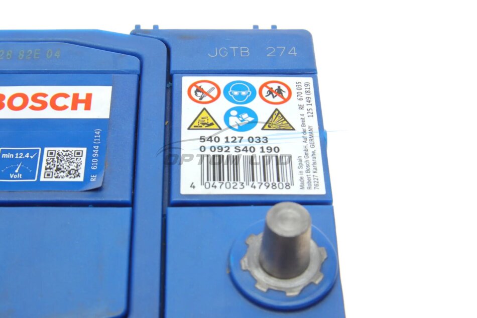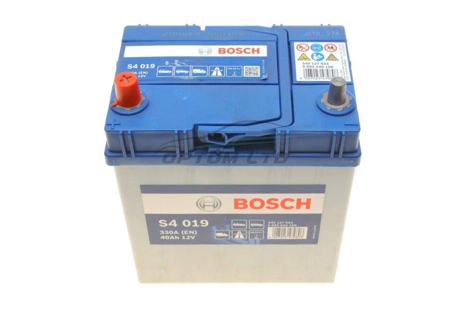 Акумулятор 40Ah-12v (S4019) (187x127x227),L,EN330 (Азія) тонк.клеми BOSCH