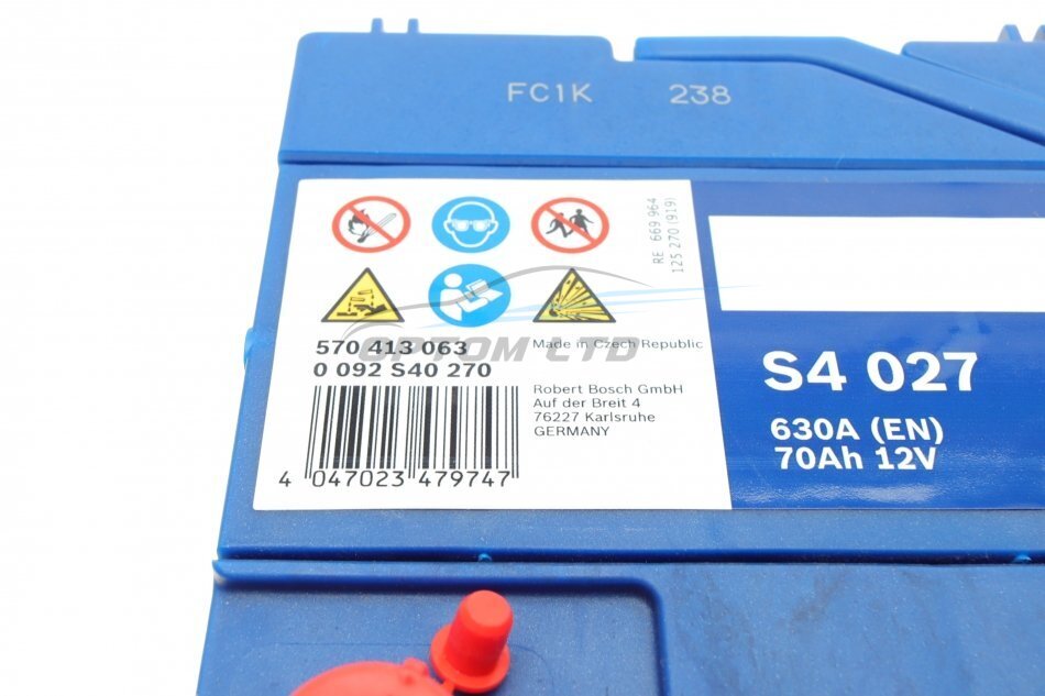 Акумулятор 70Ah-12v (S4027) (261x175x220),L,EN630(Азія) BOSCH