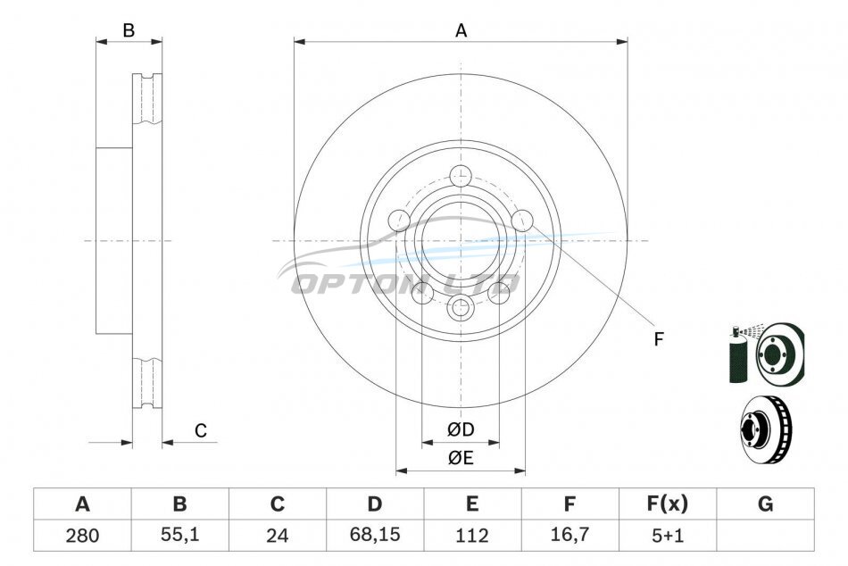 Тип гальмівного диска: вентильований
