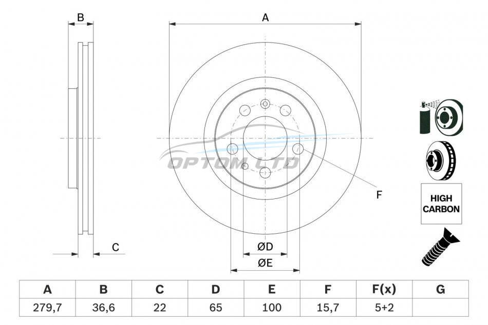 Тип гальмівного диска: із зовнішньою вентиляцією