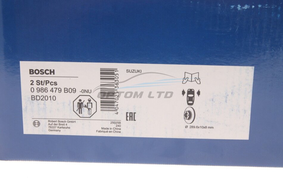 Диск гальмівний (передній) Suzuki Jimny 1.3 16V 01- (289.6x10) (opt-om) BOSCH