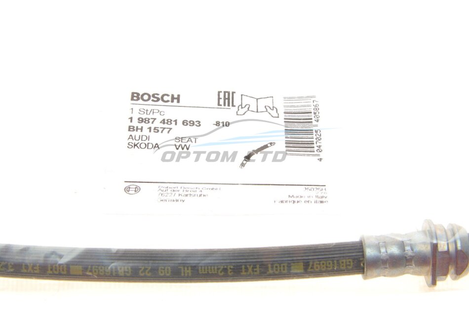 Шланг гальмівний (передній) Skoda Octavia/Superb/VW Golf/Passat 12- UA63 BOSCH