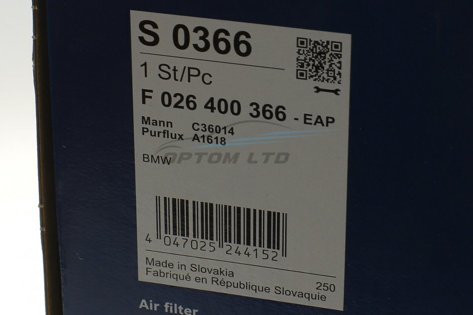 Фільтр повітряний BMW X3, X5 1.8-4.0 diesel 08- (вир-во BOSCH) F026400366 C.I.U