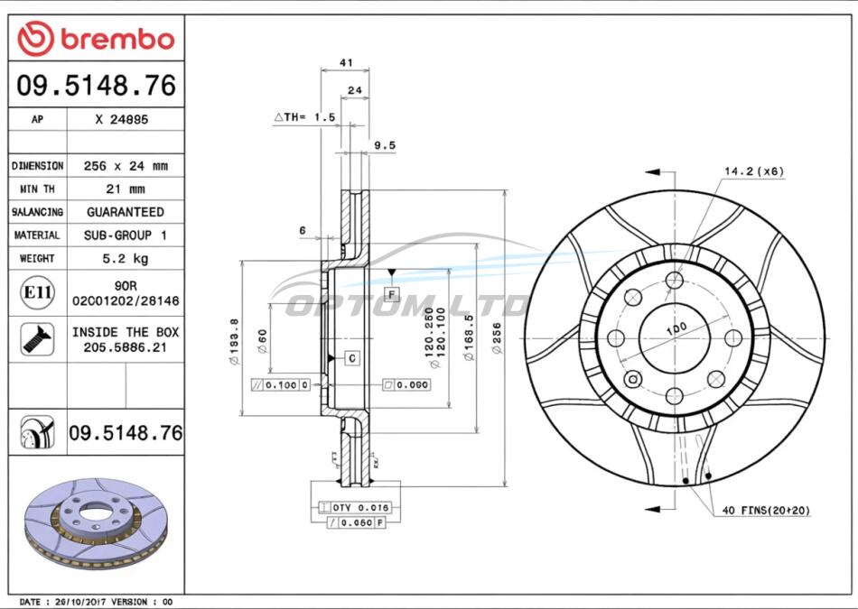 - BREMBO 09.5148.76 підходить до марок/моделей авто: