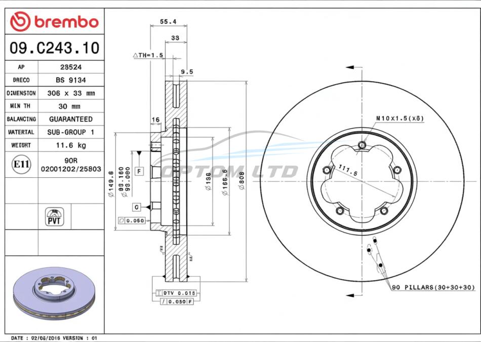 - BREMBO 09.C243.10 підходить до марок/моделей авто: