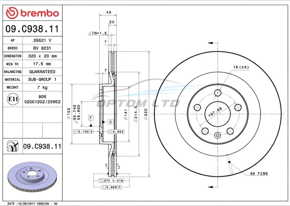 - BREMBO 09.C938.11 підходить до марок/моделей авто: