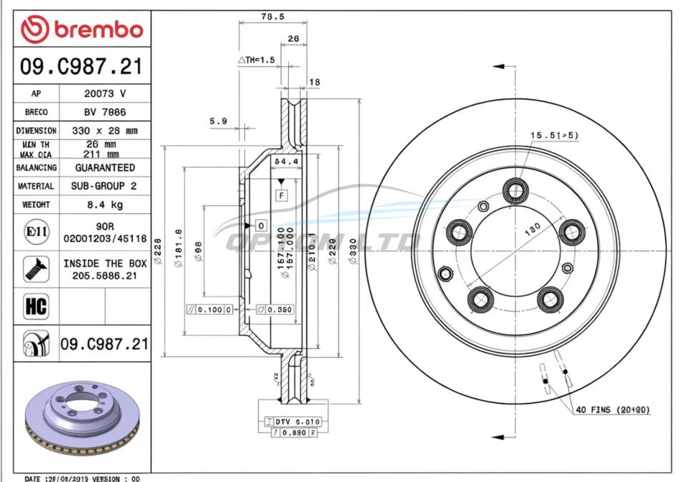 Товщина гальмівного диску (мм): 28