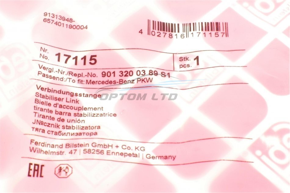 - FEBI BILSTEIN 17115 підходить до марок/моделей авто: