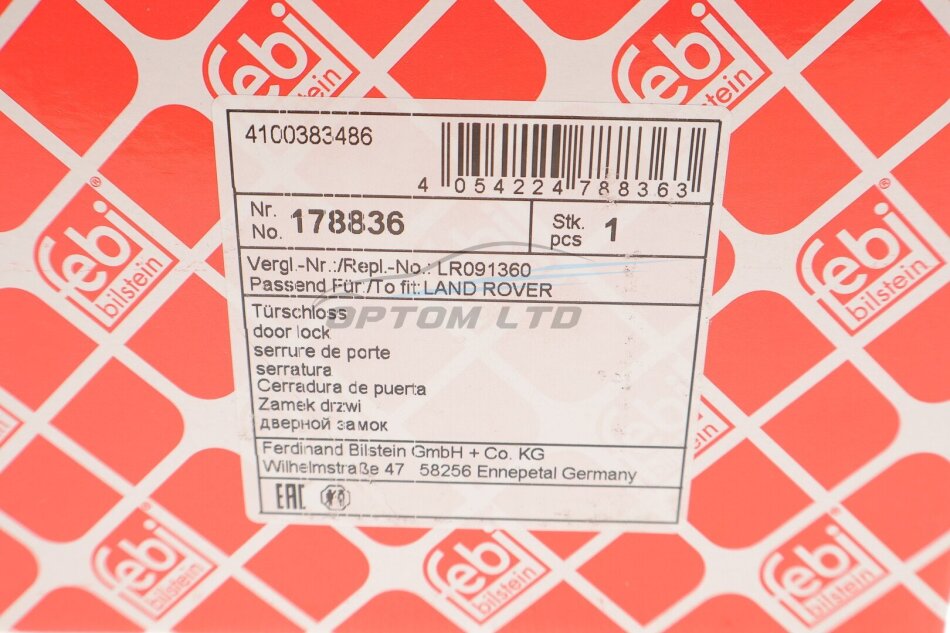 Замок дверний бренду FEBI BILSTEIN — це якісна автозапчастина, що відповідає всім технічним стандартам. Ми пропонуємо роздрібні ціни за оптовими тарифами, завдяки чому наші клієнти економлять без втрати якості.