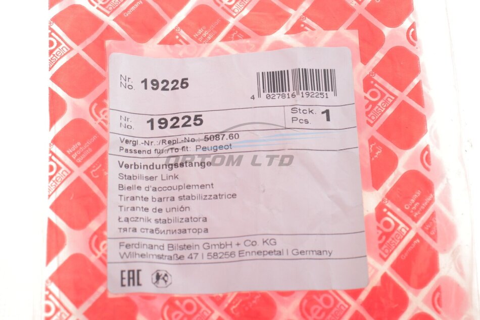- FEBI BILSTEIN 19225 підходить до марок/моделей авто: