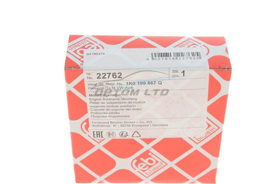 - FEBI BILSTEIN 22762 підходить до марок/моделей авто: