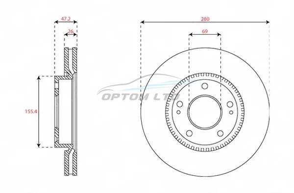 Товщина гальмівного диску (мм): 26