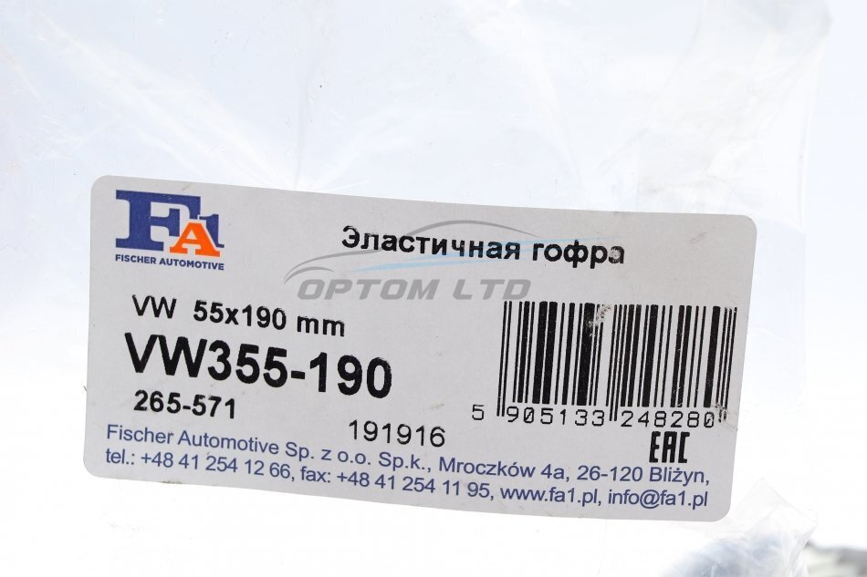 Гофротруба вихлопної системи ГОФРА 55X190 ММ 54.5 X 190.0 ММ INTERLOCK -ua Fischer Automotive One (FA1)