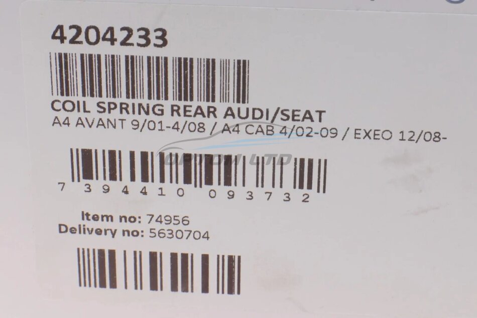 Пружина (задня) Audi A4 1.6-3.0/1.8T/1.9-2.7TDI/2.0FSI/TFSI +quattro 01-08 (унів.) (без спорт.х.ч UA63 LESJOFORS