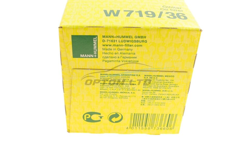 - MANN W 719/36 підходить до марок/моделей авто: