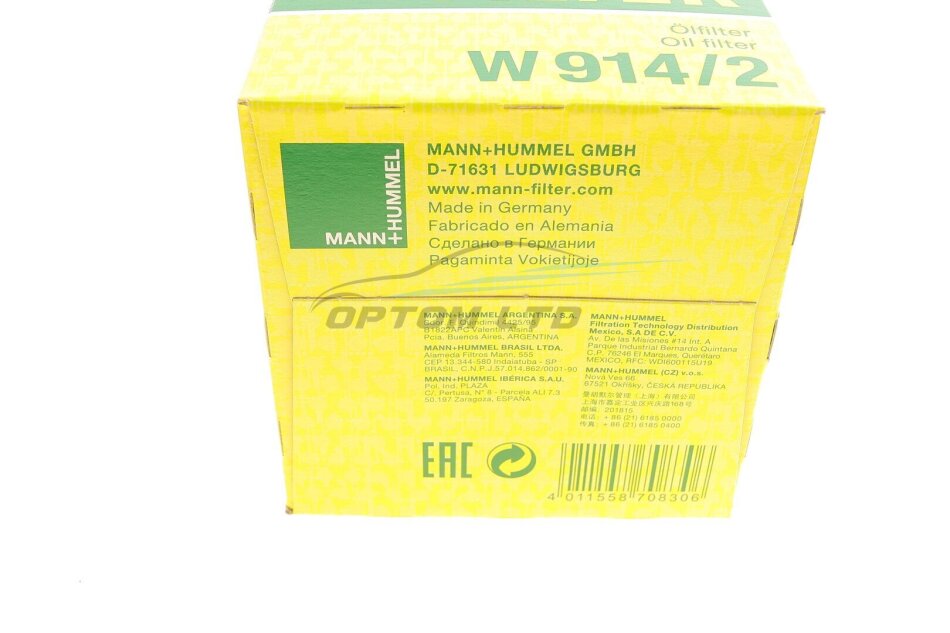 Фільтр мастильний двигуна ВАЗ 2101-2107, 2108-09 (низький 69мм) MANN