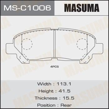 Колодки гальмівні задн Toyota Highlander (08-14) (MS-C1006) MASUMA MSC1006 Masuma