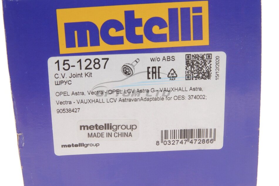 - Metelli 15-1287 підходить до марок/моделей авто: