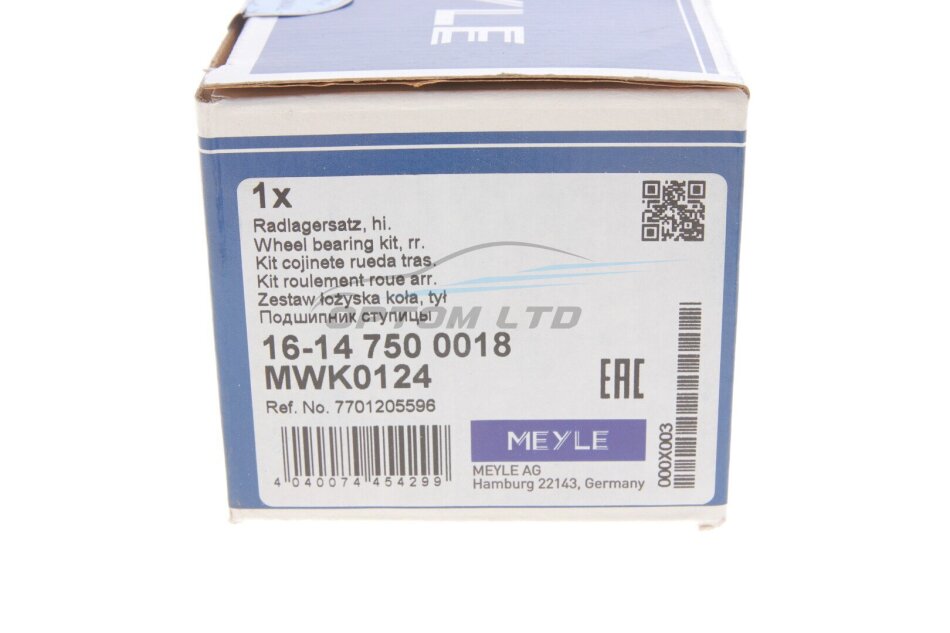 Підшипник маточини NISSAN KUBISTAR, RENAUT KANGOO, LAGUNA I, RAPID 82- зад. міст (Вир-во MEYLE)