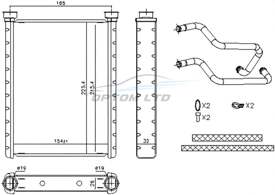 Радіатор пічки KIA CARENS II (UN) (06-) 2.0 I 16V|KIA CARENS II (UN) (06-) 2.0 CRDI|KIA CARENS II (UN) (06-) 1.6 I 16V|KIA CARENS II (UN) (06-) 1.6 CR