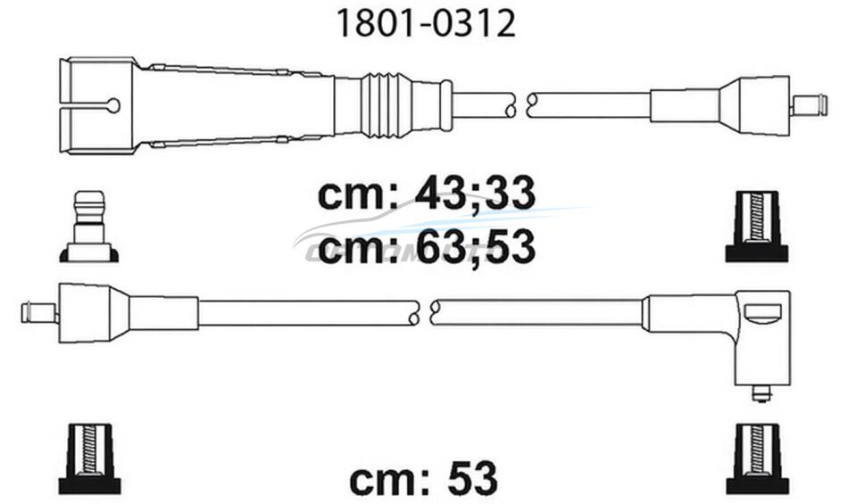 Комплект кабелів високовольтних AUDI 80, 100 83-94, VW GOLF, JETTA 83-92, PASSAT 80-97