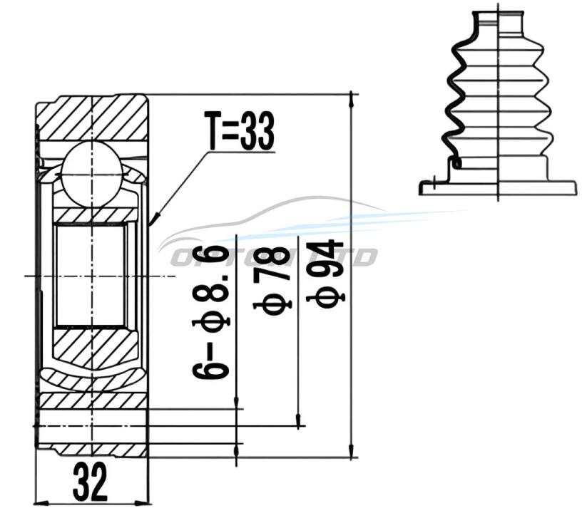 ШРКШ зі змазкою в комплекті ШАРНИРНИЙ КОМПЛЕКТ SKODA OCTAVIA 97-, VW GOLF IV 97- ВНУТР.