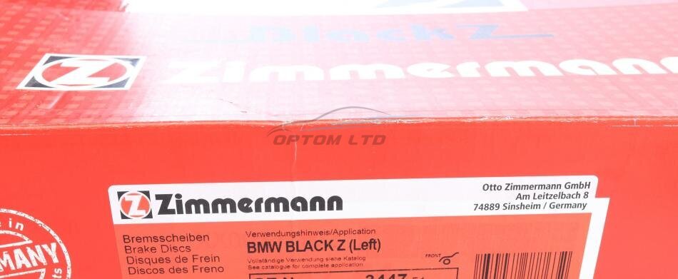 Диск гальмівний ПЕРЕДН ЛЕВЫЙ С КАНАВКАМИ ЧЕРНЫЙ BMW X5 (E70) 3.0 3.5 08-,X6 (E71) 3.0 08- ZIMMERMANN