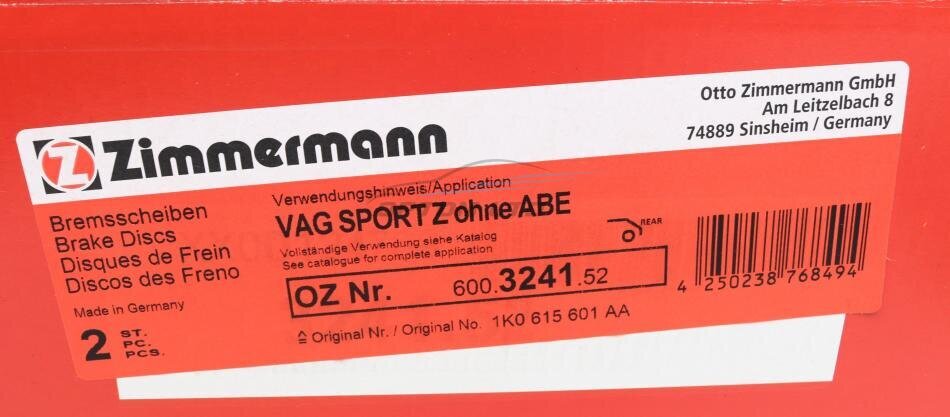 - ZIMMERMANN 600.3241.52 підходить до марок/моделей авто:
